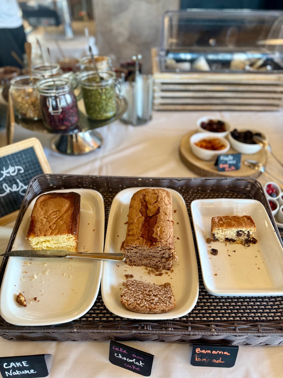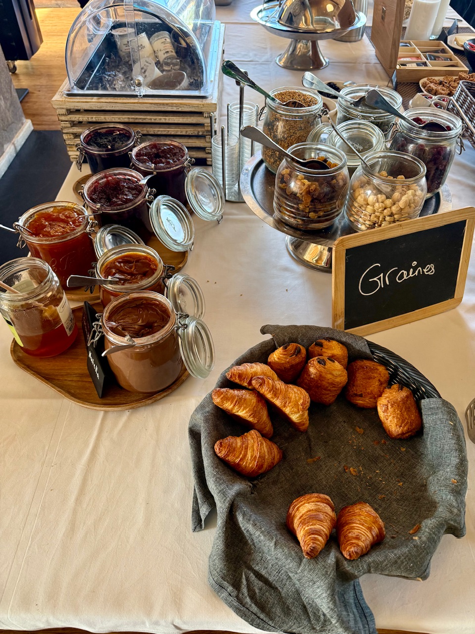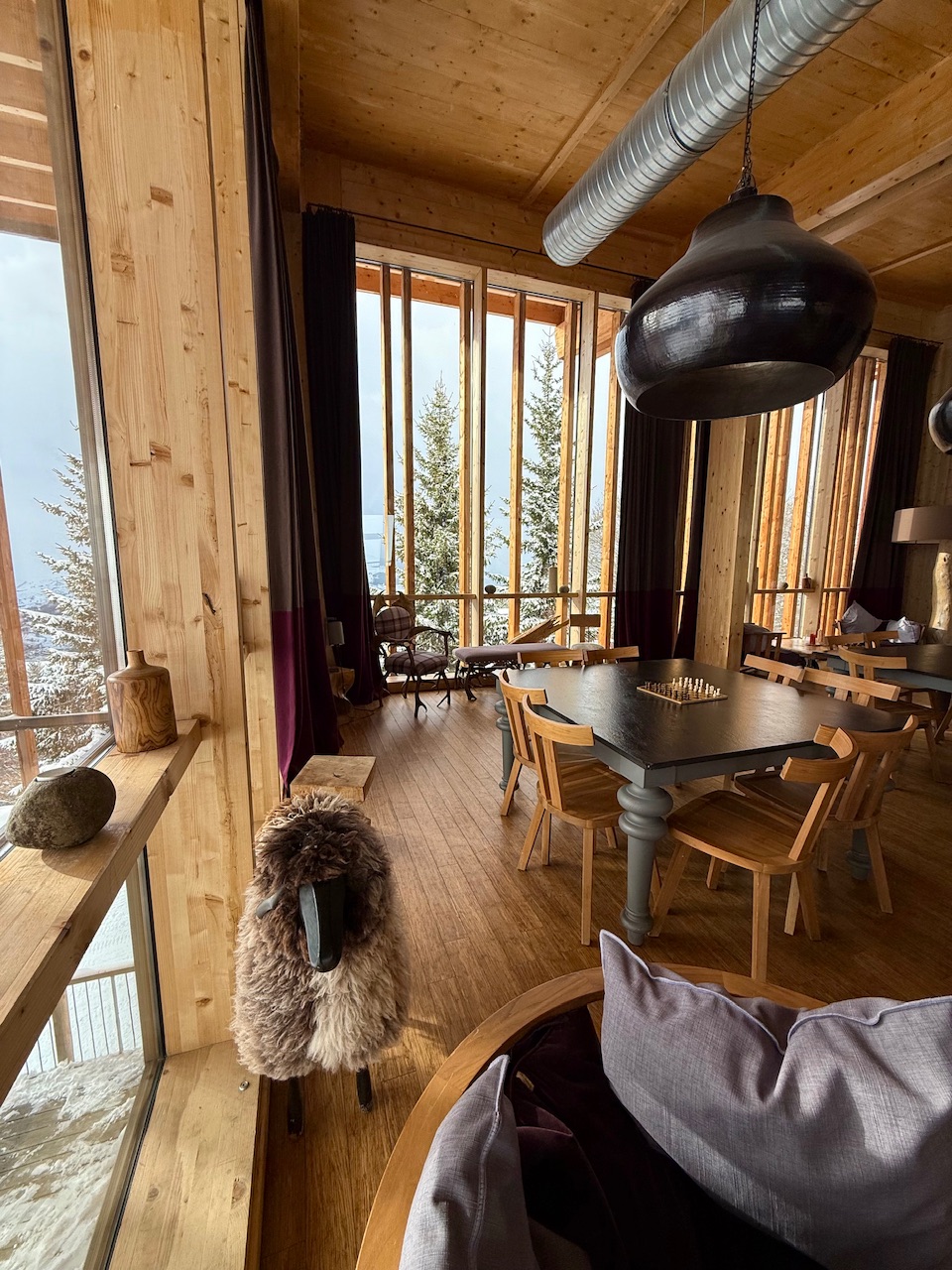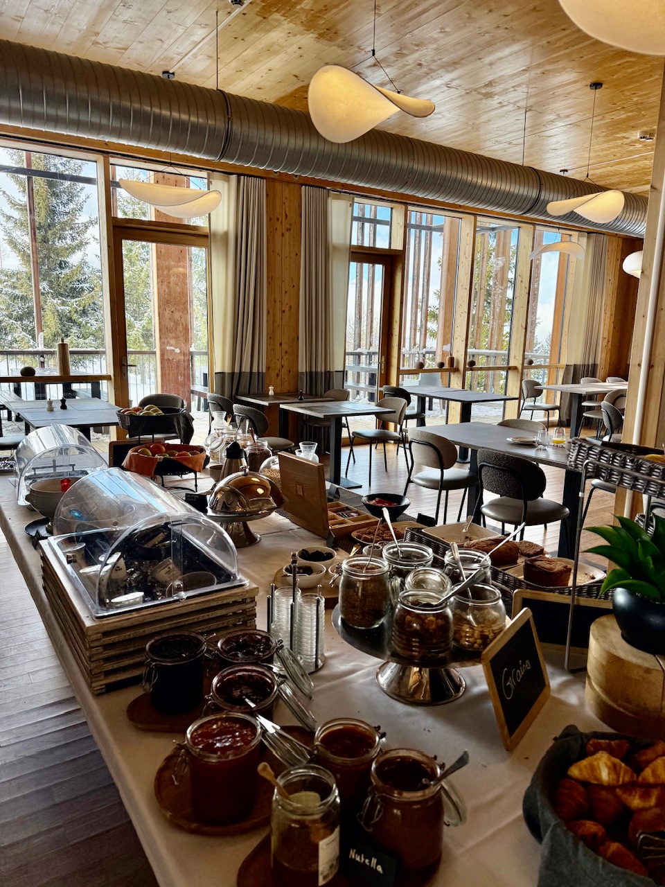 Le matin, le petit déjeuner buffet fait aussi partie des plaisirs du séjour. Il est qualitatif, généreux avec du choix aussi bien salé que sucré. Prendre son petit déjeuner face aux pistes et aux sapins enneigés est un véritable plaisir. Mention spéciale pour le banana bread maison qui était à tomber 🙂