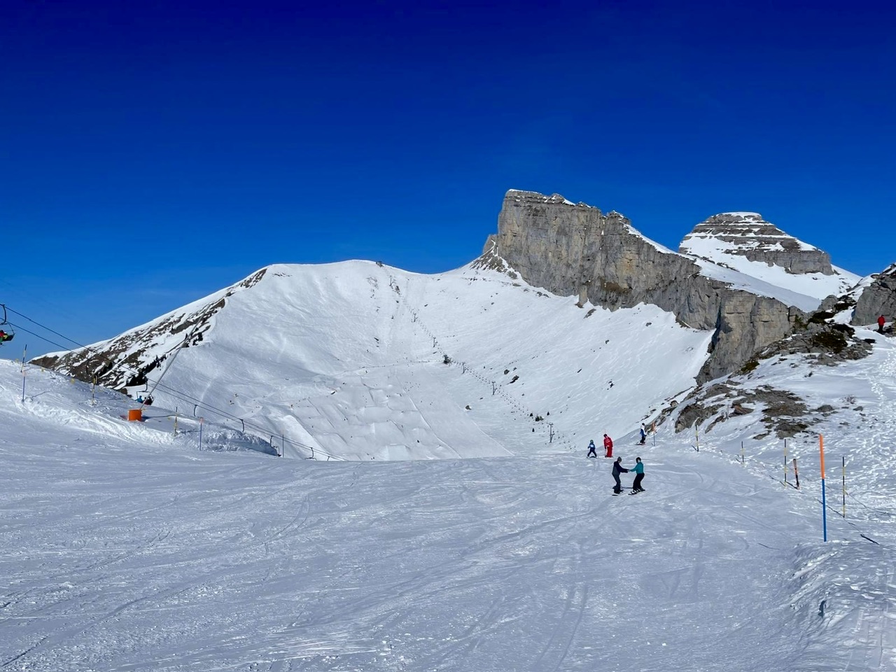 Le domaine skiable de Leysin est relié à Les Mosses et La Lécherette, ce qui forme un ensemble de plus de 100 kilomètres de pistes. C’est vraiment l’un des gros atouts de la station. En effet, on peut varier les journées, skier en famille sur des pistes accessibles, puis aller chercher un peu plus de diversité selon son niveau. Les pistes sont adaptées aussi bien aux débutants qu’aux skieurs plus expérimentés.